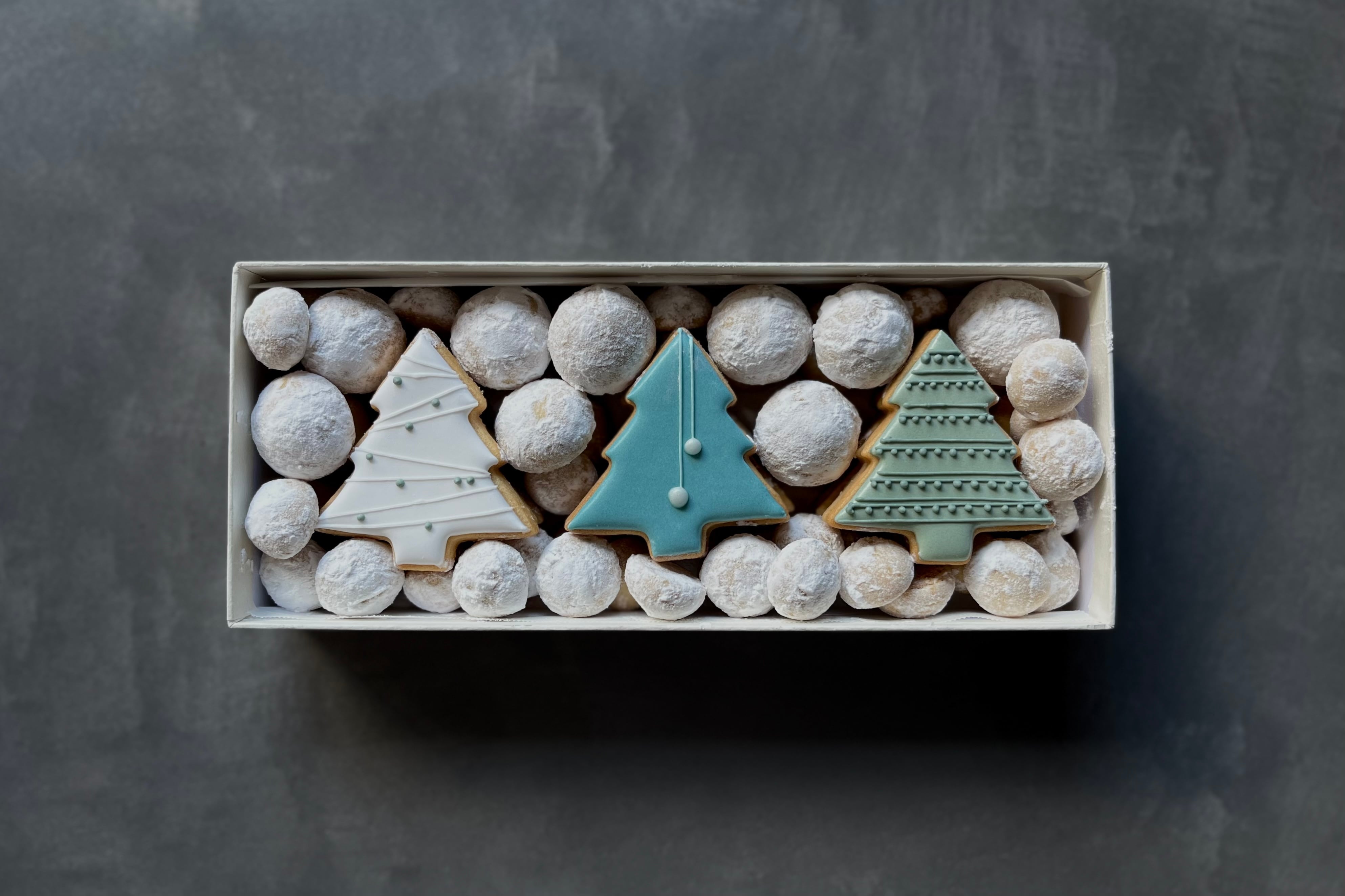 聖なる夜のもみの木を表現したアイシングクッキーでクリスマスの特別なひとときをお楽しみください。