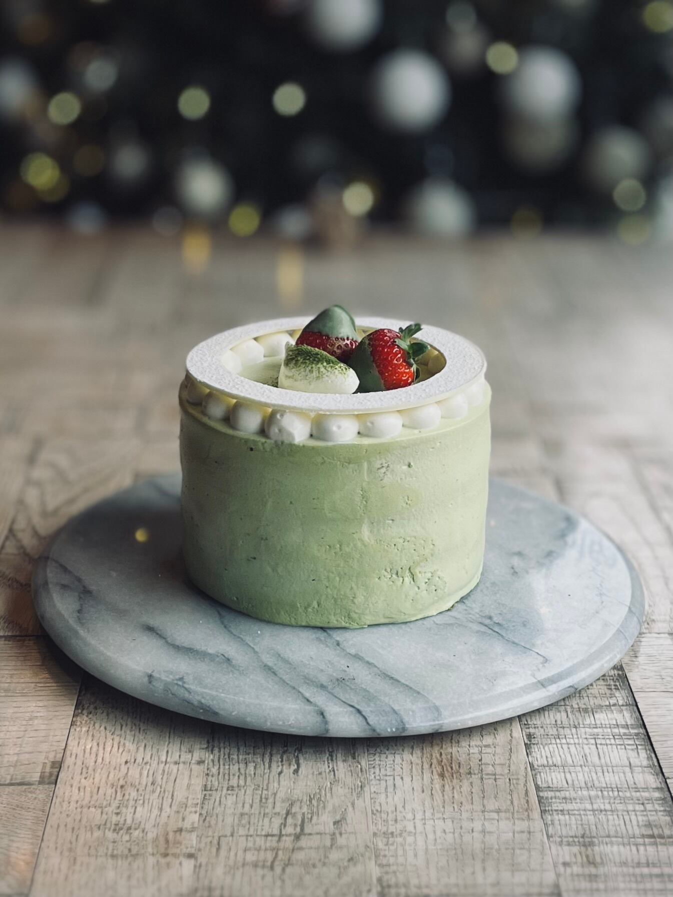 宇治抹茶と苺でクリスマスツリーを表現したケーキです。